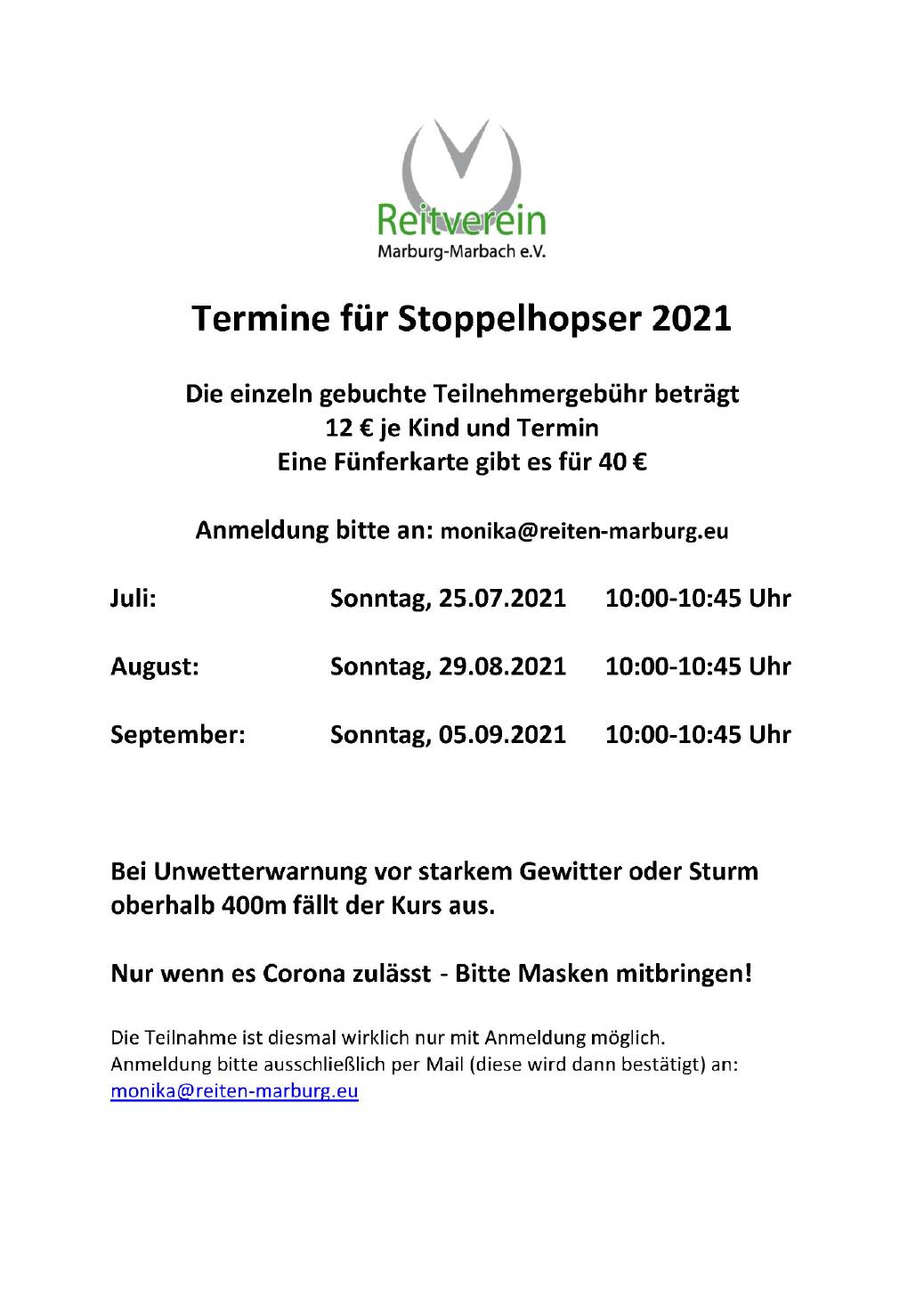 Die Termine können einzeln wahrgenommen werden, eine kurze Anmeldung per Mail ist aber erforderlich. Bitte Fahrrad-oder Reithelm mitbringen.
