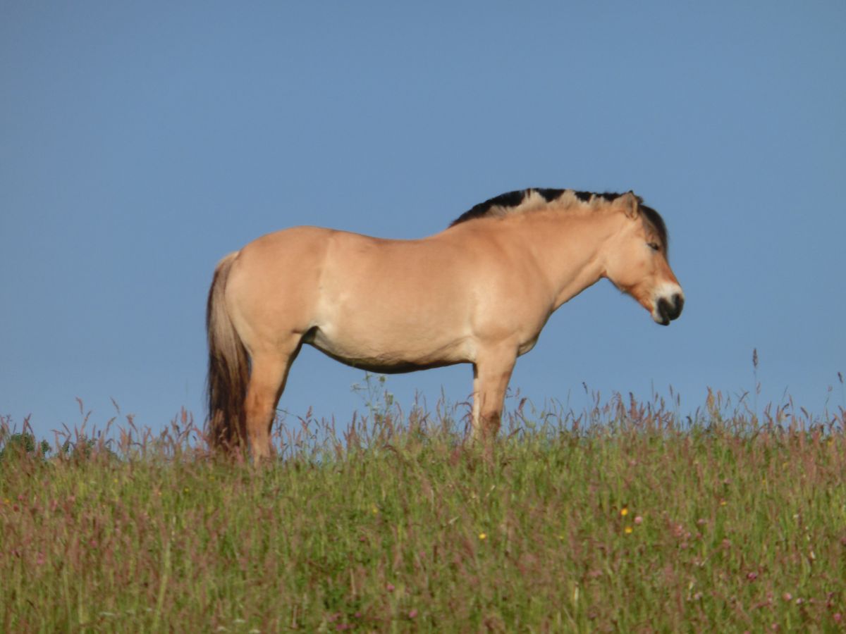 Unsere Fjordstute, die eine so edle Abstammung und derartige züchterische Auszeichnungen hat, dass wir zunächst befürchteten, wir müssten sie mit "von und zu " anreden. Sie ist aber so unkompliziert, freundlich, mit angenehmen Temperament, immer bereit, es ihrem Reiter recht zu machen, dass wir sicher sind, sie duzen zu dürfen.